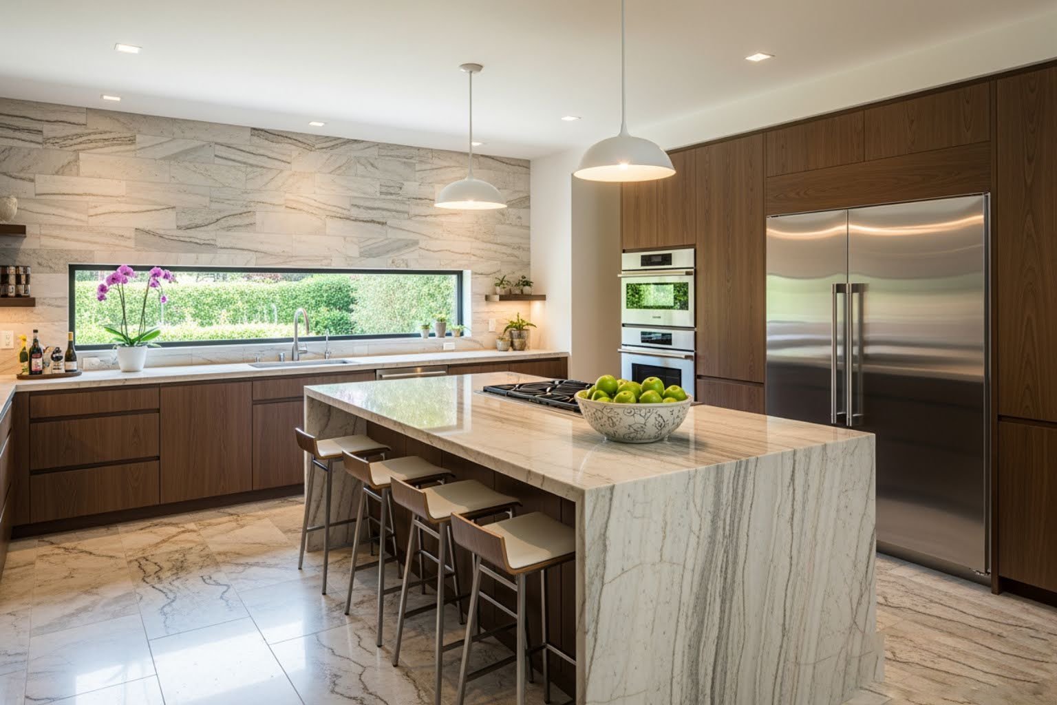 • Top Materials: Marble (neat), Limestone (warm), Granite/Quartzite (most durable), Slate (rustic)